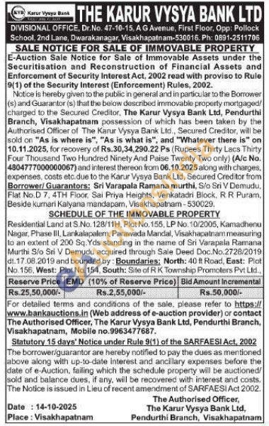 Residential Land at S.No. 128/11H, Plot No. 155, LP No. 10/2005, Kamadhenu Nagar, Phase III, Lankalapalem, Parawada Mandal, Visakhapatnam measuring to an extent of 200 Sq. Yds standing in the name of Sri Varapala Ramana Murthi S/o Sri V Demudu acquired through Sale Deed Doc.No.2728/2019 dt.17.08.2019 and bounded by: Boundaries: North: 40 ft Road, East: Plot No. 156, West: Plot No. 154, South: Site of RK Township Promoters Pvt Ltd.