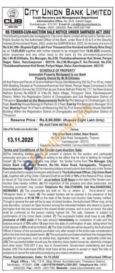 All that Plece and Parcel of Grama Natham House Site Measuring 592 Sq. Ftor 55 sq. meter With Building Situated at Thulukananthamman Koil Street, Periyar Nagar, Comprised in Old Grama Natham Survey No 23/22 Part as per Grama Natham Patta No. 117, the New Grama Natham Survey No 489/26 of V.No 29. Ilialur Village, Thiruporur Taluk, Kancheepuram District, Within the Registration District of Chengalpattu and Sub Registration District of Thiruporur Bounded on the Measurements North by Plat Belongs to Chokkalingam 32.2 Feet, South by House Belongs to Pazhani 32.2 Feet, East by Plot Belongs to Murugan 18.4 Feet, West by Road 18.4 Feet In all Measuring 592 Sq Ft of Grama Natham House Site With Building Within the Registration District of Chengalpattu and Sub Registration District of Thiruporur.