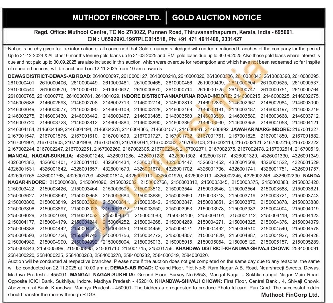 Muthoot Fincorp Ltd Gold Auctions Auction in Thiruvananthapuram