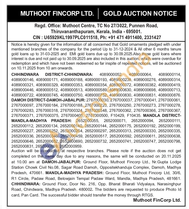 Muthoot Fincorp Ltd Gold Auctions Auction in Chhindwara