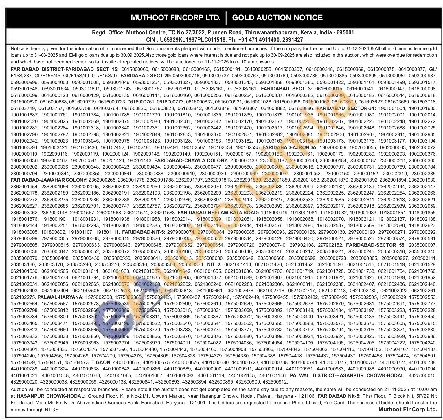 Muthoot Fincorp Ltd Gold Auctions Auction in Faridabad