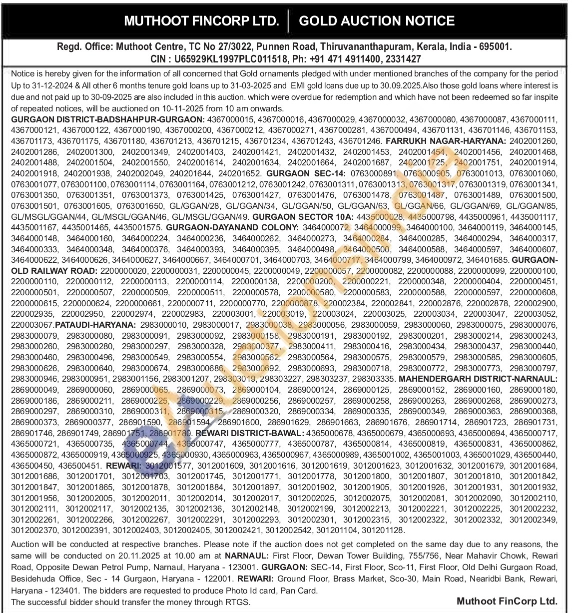 Muthoot Fincorp Ltd Gold Auctions Auction in Gurugram