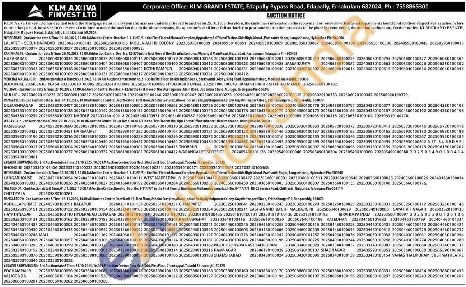 KLM Axiva Finvest Ltd Gold Auctions Auction in Ernakulam