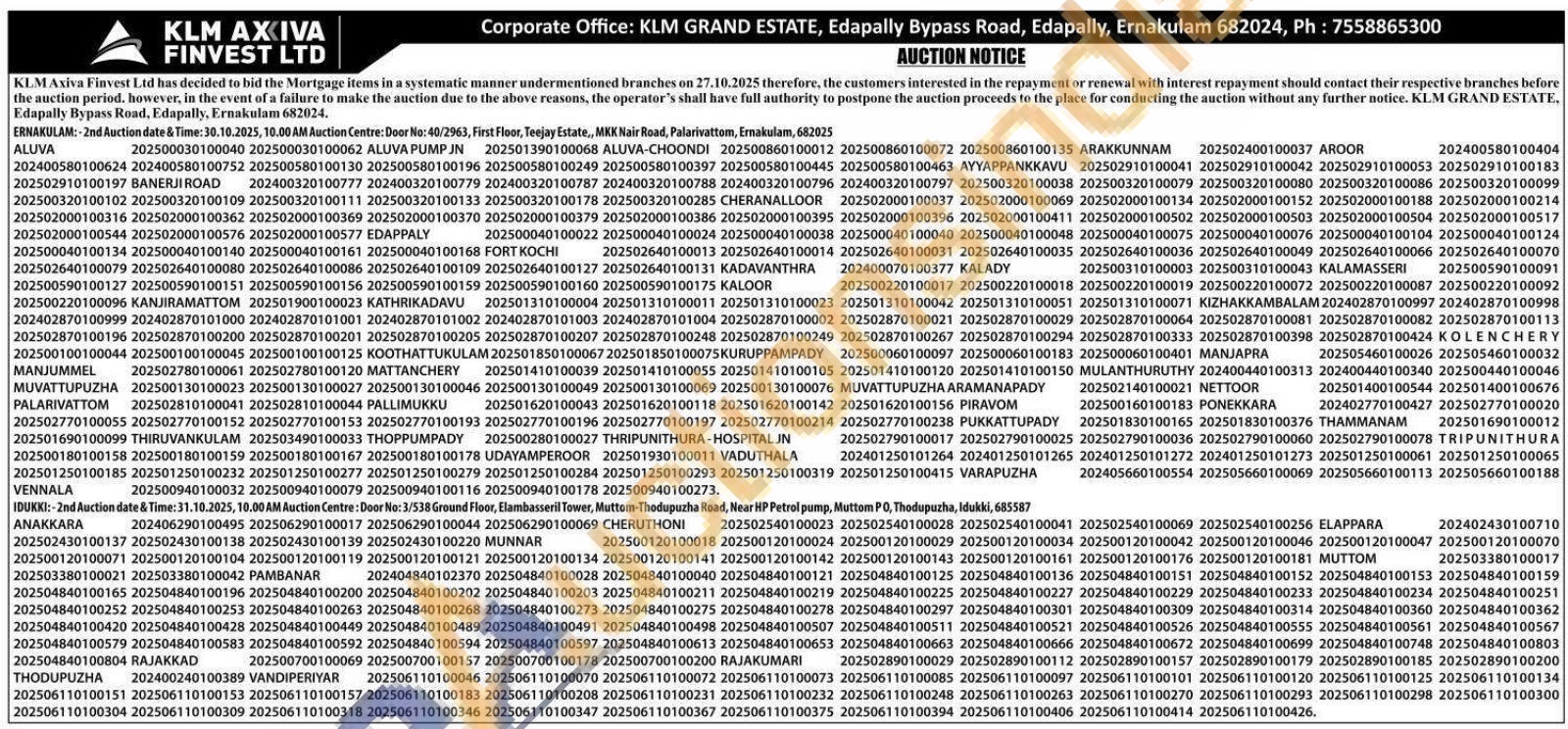 KLM Axiva Finvest Ltd Gold Auctions Auction in Ernakulam