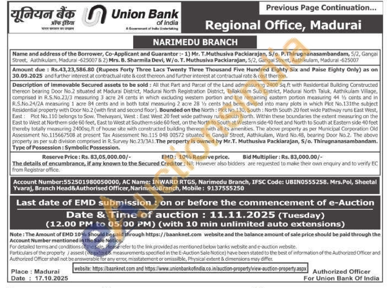 1) All that Part and Parcel of the Land with Building constructed thereon situated at Sivagangai District, Sivagangai Registration District, Kalaiyarkoil Sub-Registration District, Kalaiyarkoll Taluk, Sethambal Group & Panchayat in Pudukottai Village with Old Patta No. 7020 and Old Survey No. 124/1A totally admeasuring 0.16.05 hectare in which Southem side comprised under New Patta No.7126 now sub- divided as S.No.124/1A1 admeasuring 0.10.0 hectare ie, 25 cent or 108905q.ft with following boundaries(as per Doc No.4838 dt 29.12.2020): East by Punjai Land of Veeran, West by : Punjai Land of Francis Vagaiyara, North by: Punjal Land purchased by Sudhanthiraraja, South by: Channel. The Property is owned by Mr. Baskara Sethupathi.M, S/o. Muthusamy. Possession Type: Physical Possession