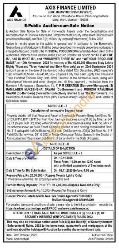 Property details All that Piece and Parcel of Immovable Property Being Unit Shop No. B/109,B/110, B/111, B/112 on First Floor, having area admeasuring 31.68 Sq. Mrs.ie. 341 Sq. Ft. (Super Built Up) along with undivided share in land admeasuring 14.86 Sq. Mtrs, in the scheme known as Sukh Shanti Complex situated at land bearing consolidated Block No. 313 paiki/paiki 1 of Old Block No. 313 paiki [Old Survey No. 205] & Old Block No. 317 Paiki [Old Survey Nos. 201 & 202) of Mouje Changodar Taluka Sanand in the District of Ahmedabad and Registration Sub District of Sanand within the State of Gujarat
