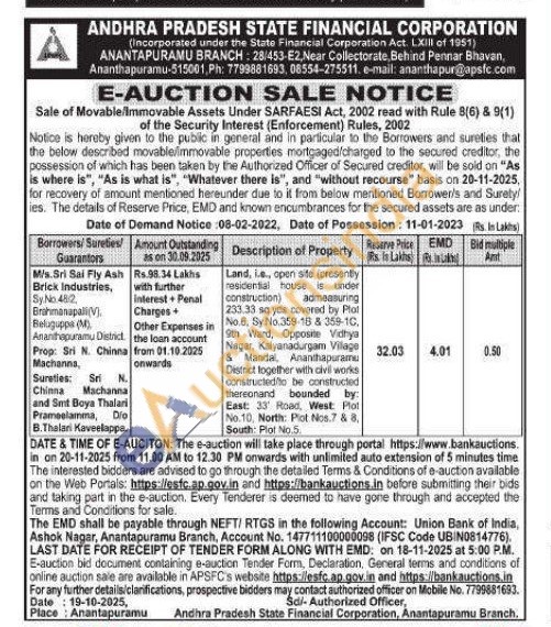 Land, i.e., open site (presantly residential house is under construction) admeasuring 233.33 sq yds covered by Plat No.6, Sy No.359-18 & 359-10, 9th Ward, Opposite Vidhya Nagar, Kalyanadurgam Village & Mandal, Ananthapuramu District together with civil works constructed to be constructed thereonand bounded by: East: 33 Road, West Plot No.10, North: Plot Nos.7 & 8. South: Plot No.5