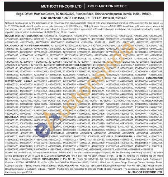 Muthoot Fincorp Ltd Gold Auctions Auction in Thiruvananthapuram