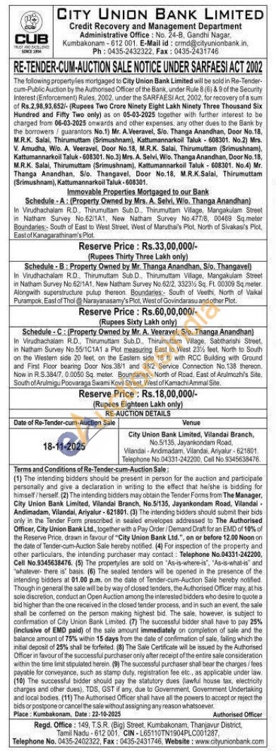 In Virudhachalam R.D., Thirumuttam Sub.D. Thirumuttam Vilage, Mangakulam Steet in Natham Survey No 62/1A1, New Natham Survey No. 62/2, 3323% Sq. FL. 00309 Sq meler. Alongwith superstructure putup thereon. Boundaries South of Veelhi, North of Valkal Purampok, East of Thol @ Narayanasamy's Plot, West of Govindarasu and other Plot