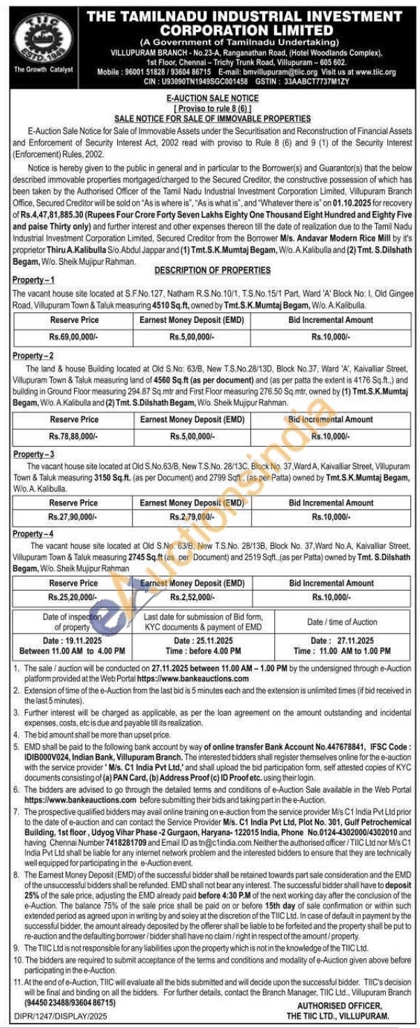 The vacant house sile located at Old S.No. 63/B, New T.S.No. 28/138, Block No. 37. Want No.A, Kaivaliar Street, Villupuram Town & Taluk measuring 2745 Sq.ft (as per Document) and 2519 Soft (as per Patta) owned by Tmt. S.Dilshath Begam, Wo Sheik Mujipur Rahman