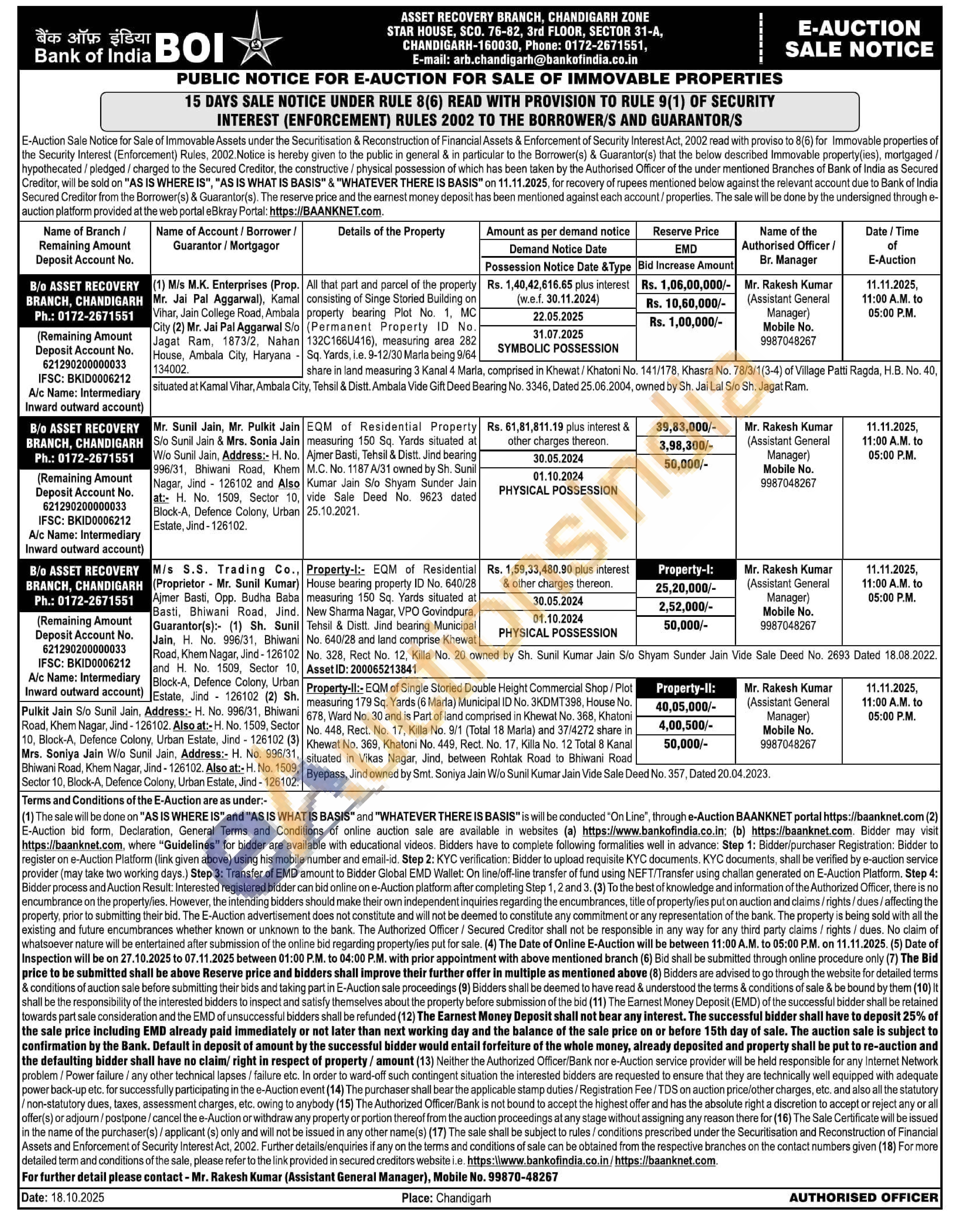 Property-ll:-EQM of Single Storied Double Height Commercial Shop/Plot measuring 179 Sq. Yards (6 Maria) Municipal ID No. 3KDMT398, House No. 678, Ward No. 30 and is Part of land comprised in Khewal No. 388, Khaloni No. 448, Recl. No. 17, Killa No. 9/1 (Total 18 Maria) and 37/4272 share in Khewat No. 369. Khatoni No. 449, Rect. No. 17. Killa No. 12 Total 3 Kanal situated in Vikas Nagar, Jind, between Rohlak Road to Bhiwani Road Byepass, Jind owned by Smt. Soniya Jain W/o Sunil Kumar Jain Vide Sale Deed No. 357 Dated 20.04.2023.