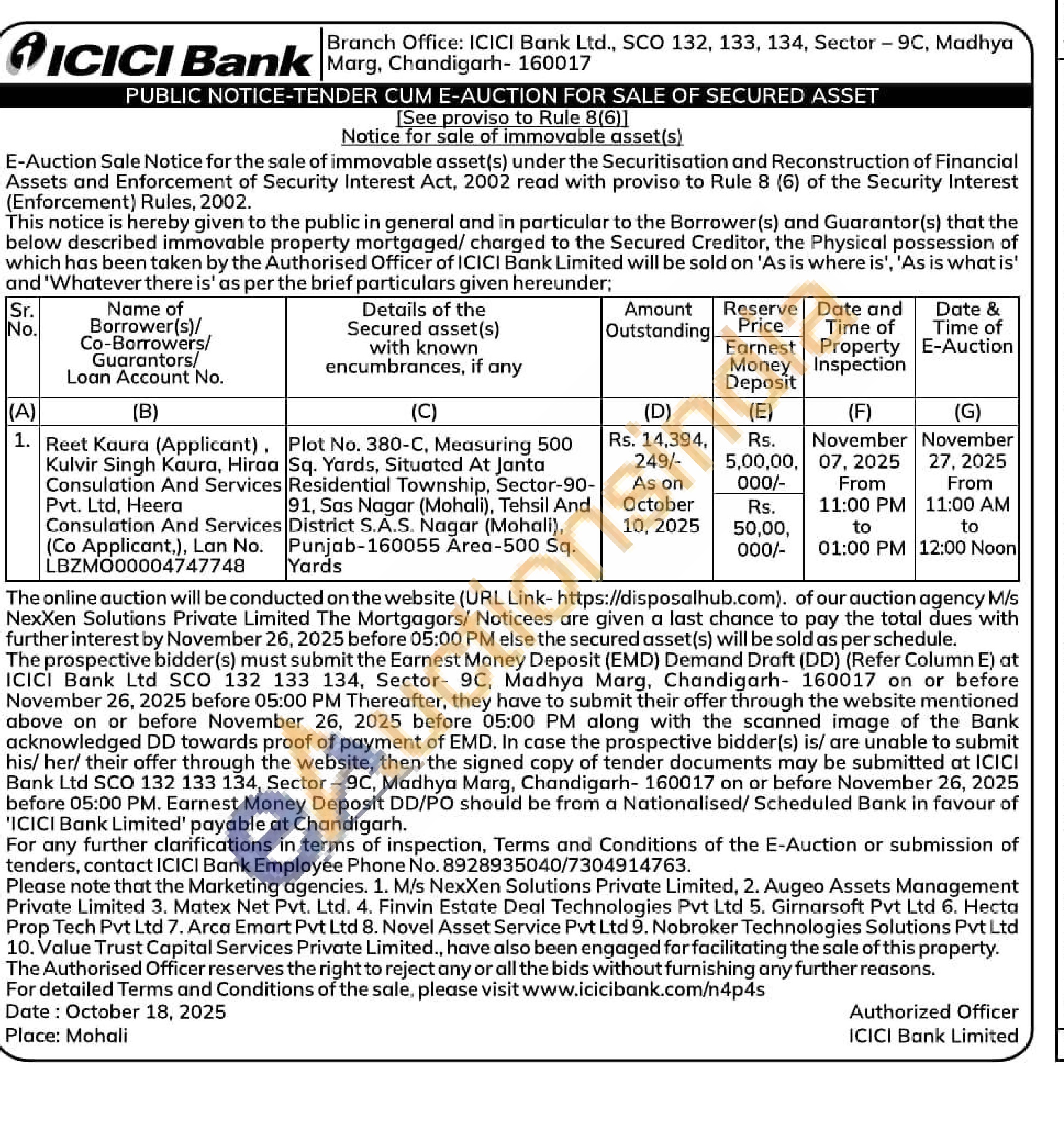 Plot No. 380-C, Measuring 500 Sq. Yards, Situated At Janta Residential Township, Sector-90-91, Sas Nagar (Mohali), Tehsil And District S.A.S. Nagar (Mohali), Punjab-160055 Area-500 Sq. Yards