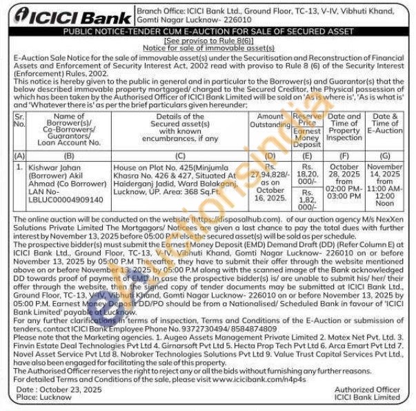 House on Plot No. 425(Minjumla Khasra No. 426 & 427, Situated At Haiderganj Jadid, Ward Balakganj. Lucknow, UP. Area: 368 Sq.Ft