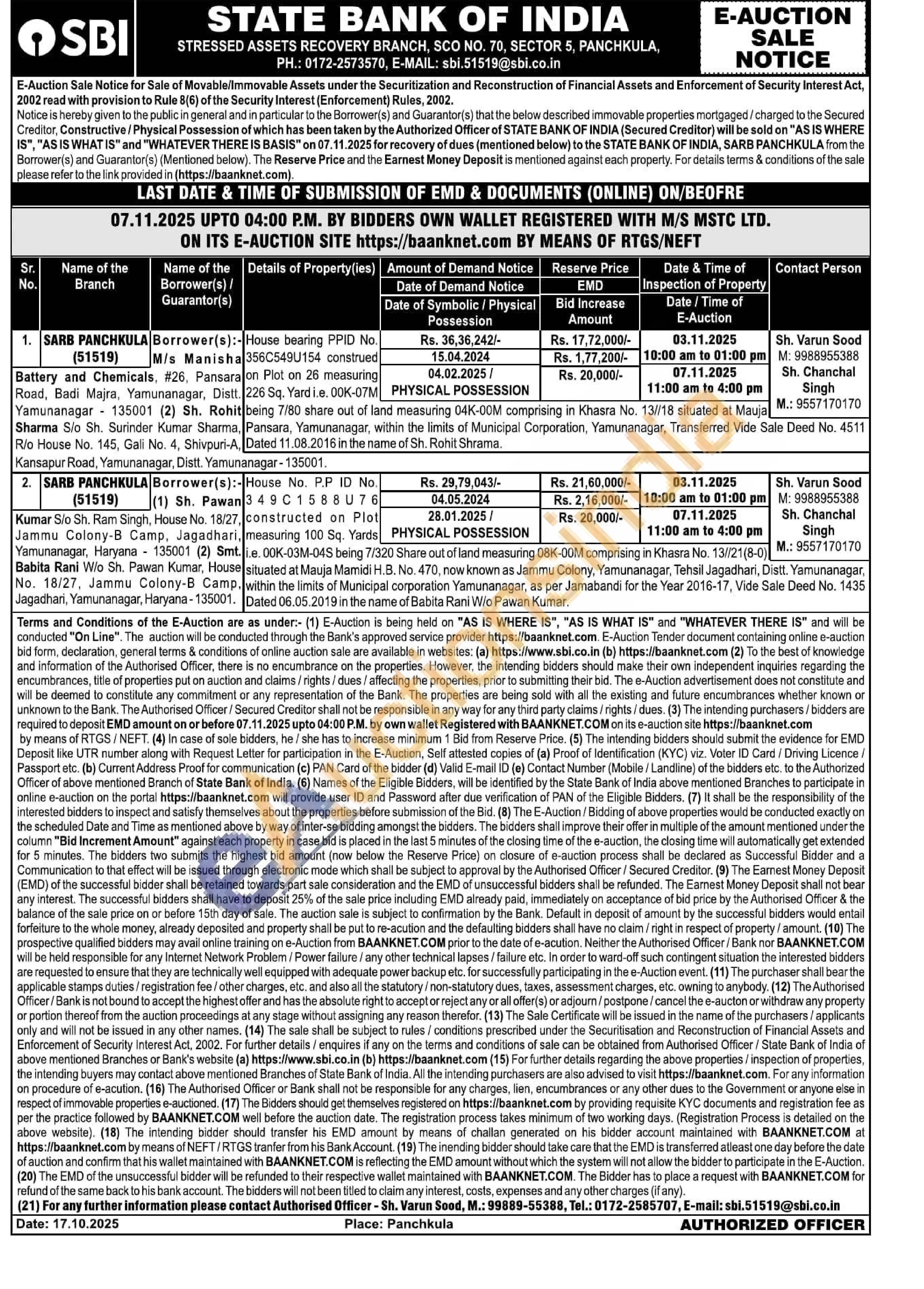 Mr .Sh. Varun Sood : 9988955388 /Mr.Sh. Chanchal Singh:9557170170