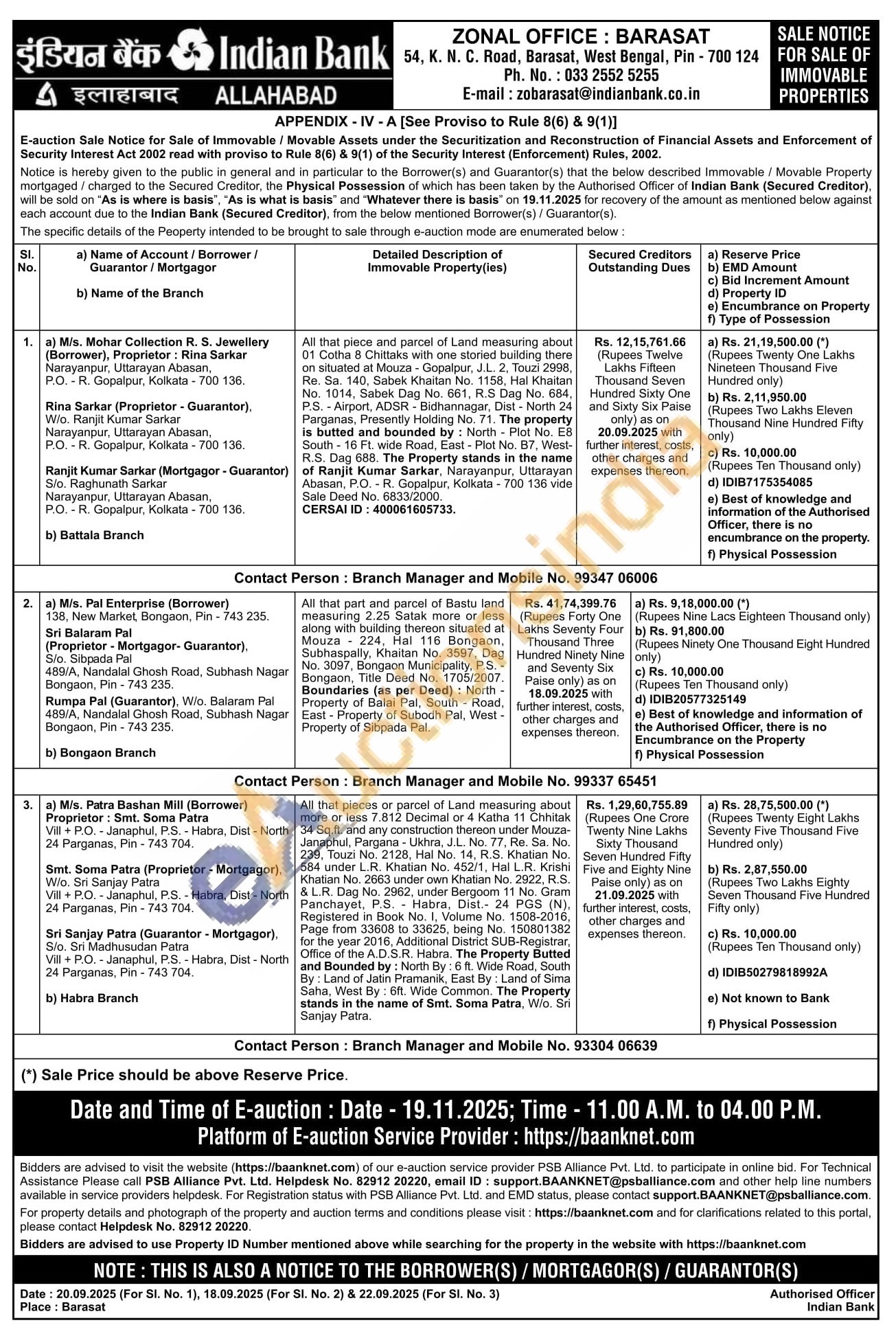 All that pieces or parcel of Land measuring about more or less 7.812 Decimal or 4 Katha 11 Chhitak 34 Sq.ft. and any co and any construction thereon under Mouza Janaphul, Pargana Ukhra, J.L. No. 77, Re. Sa. No. 239, Touzi No. 2128, Hal No. 14, R.S. Khatian No. 584 under L.R. Khatian No. 452/1, Hal L.R. Krishi Khatian No. 2663 under own Khatian No. 2922, R.S. & & L L.R. Dag No. No. 2962, 21 under Bergoom 11 No. No. Gram Panchayet, P.S. Habra. Dist. 24 PGS (N), Registered in Book No. I. Volume No. 1508-2016, Page from 33608 to 33625, being No. 150801382 for the year 2016, Additional District SUB-Registrar, Office of the A.D.S.R. Habra. The Property Butted and Bounded by: North By: 6 ft. Wide Road, South By: Land of Jatin Pramanik, East By: Land of Sima Saha. West By: Bft. Wide Common. The Property stands in the name of Smt. Soma Patra, W/o, Sri Sanjay Patra.