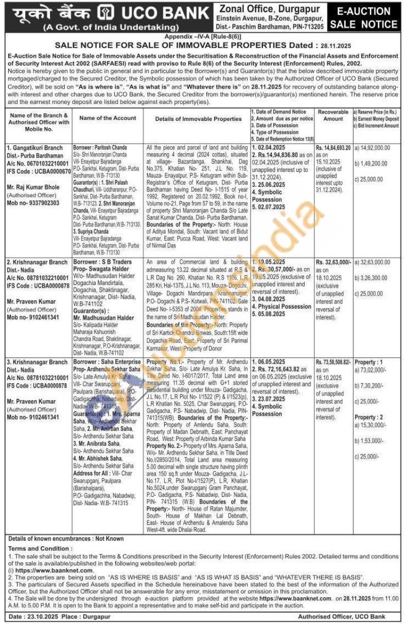 Property No. 2:-Property of Mrs. Aparna Saha, Wio- Mr. Ardhendu Sekhar Saha, in Title Deed No.12850/2014, Total Land area measuring 5.00 decimal with single structure having plinth area 150 sq.ft under Mouza- Gadigacha, JL-No. 17. LR Plot No-1/1527(P), LR, Khatian No.5024. under Swarupganj Gram Panchayat. PO- Gadigacha, PS- Nabadwip, Dist- Nada, PIN 741315 (WE) Boundaries of the Property: North- House of Ratan Majumder, South House of Makhan Lal Debnath, East House of Ardhendu & Amalendu Saha West-4ft wide Dhala Road