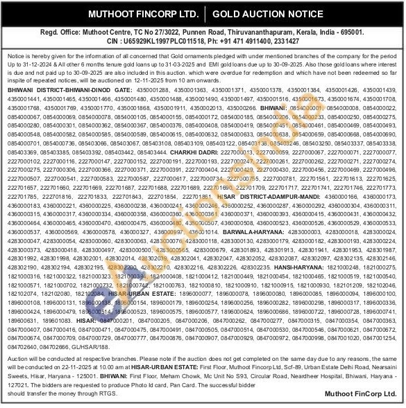 Muthoot Fincorp Ltd Gold Auctions Auction in Thiruvananthapuram