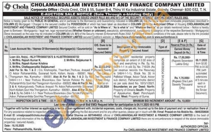 The subject residential property comprises an extent of 2.02 ares of land and everything in Re. Sy. No. 548/4-1-1 in old Sy. No. 716/24 (As) -per revenue records the Resurvey is 548-4-1-1-1), Block No. 35 in Pallickal Village, Adoor Taluk Adoor sub district, Pathanamthotta district as per sale deed No. 1815/1/2021 Boundaries as per Deed: North: Property of Omana South: Property of Ajayakumar, East: Panchayath Road, West: Property of Suma