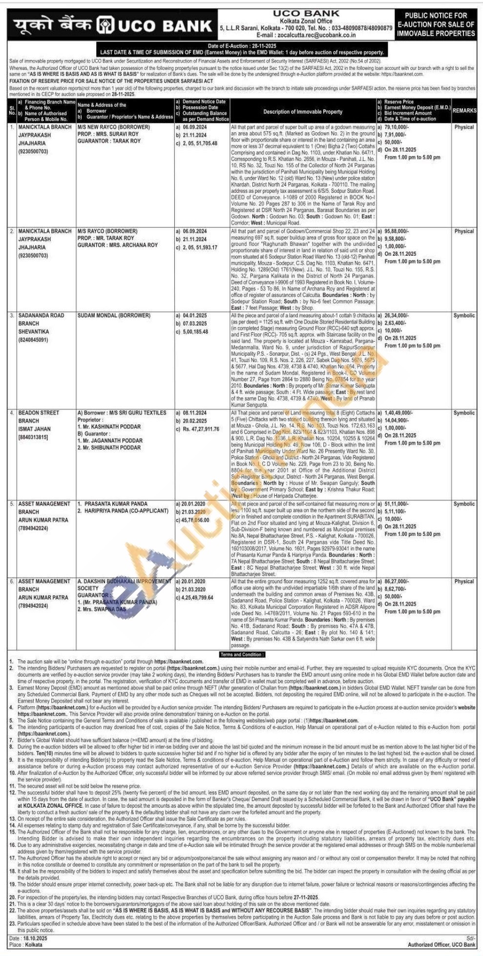 All That piece and parcel of Land measuring total 8 (Eight) Coftachs ( 5 (Five) Chittacks with two storied building thereon lying and situated at Mouza Ghola, JL No. 14. R.S. No. 103, Touzi Nos. 172.63,163 and 6 Comprised in Dag Nos. 823/1104 & 823/1103, Khatian Nos. 898 & 900, L.R. Dag No. 1036. LR. Khatian Nos. 10204, 10255 & 10264 being Municipal Holding No. 49, Now 106. D-Block within the limit of Panihati Municipality Under Ward No. 26 Presently Ward No. 30. Police Station Ghola and District-North 24 Parganas, Vide Registered in Book No. 1. CD Volume No. 229, Page from 23 to 30. Being No. 8804 for the year 2001 at Office of the Additional District Sub-Registrar Barrackpur, District North 24 Parganas, West Bengal Boundaries: North by: House of Mr. Swapan Ganguly, South by: Government Primary School, East by: Krishna Thakur Road: West by: House of Haripada Chatterjee