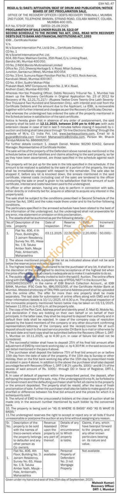Fiat No. 406, 4 th Floor, Building No. 3 Jainam Residency, Survey No. 65, Hissa No. 1 B. Taluka Amber Nath, Mauje Pale. Ambernath, Maharashtra