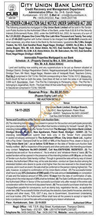 Land and building now existing and any superstructure to be put up thereon situated at Dindigul District, Dindigul Registration District, Nagalnayackanpatti Sub-Registration District, Dindigul Town, 6th Ward, Nagal Nagar, Western side of Vedapatti Road, Teachers Colony, Plot No.2 comprised in Old T.S.No. 1942/4A corresponding to New TS.No. 101/2. Measuring: North-South 82 feet on both the sides, East-West 45 feet on both the sides in all measuring 3.690 sqft Boundaries: East-The Plot No.3 belonging to Periasamy, West-The Plot No. 1 belonging to Jeganathan, North-The East-West 30 feet wide Road, South-The land belonging to Vasudevan comprised in T.S.No. 1942/48