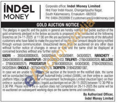 Indel money ltd Gold Auctions Auction in Anantapur