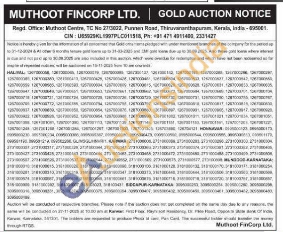 Muthoot Fincorp Ltd Gold Auctions Auction in Thiruvananthapuram