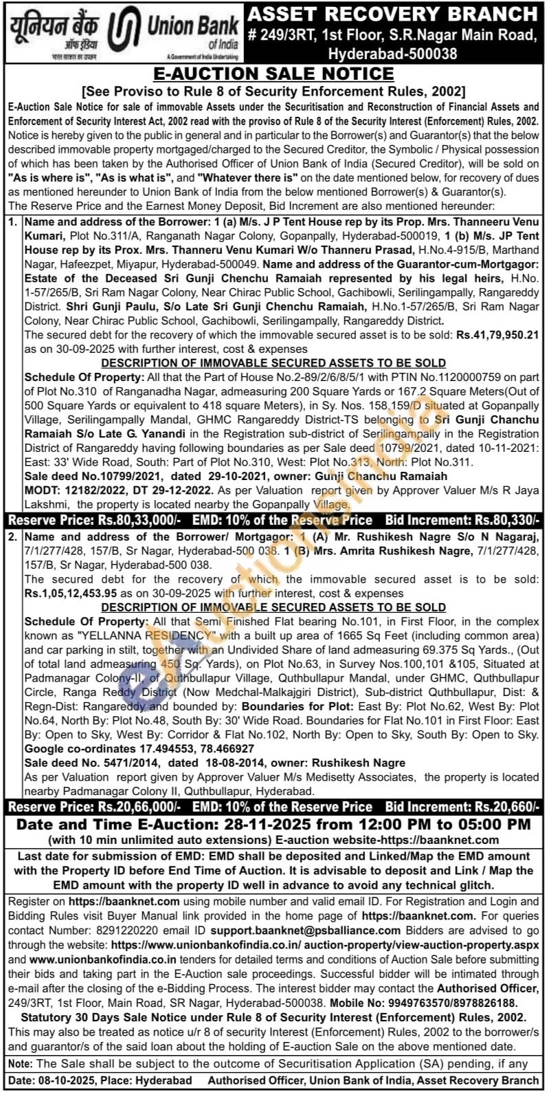 Schedule Of Property: All that the Part of House No.2-89/2/6/8/5/1 with PTIN No.1120000759 on part of Plot No.310 of Ranganadha Nagar, admeasuring 200 Square Yards or 167.2 Square Meters (Out of 500 Square Yards or equivalent to 418 square Meters), in Sy. Nos. 158,159/D situated at Gopanpally Village, Serilingampally Mandal, GHMC Rangareddy District-TS belonging to Sri Gunji Chanchu Ramaiah S/o Late G. Yanandi in the Registration sub-district of Serilingampally in the Registration District of Rangareddy having following boundaries as per Sale deed 10799/2021, dated 10-11-2021: East: 33' Wide Road, South: Part of Plot No.310, West: Plot No.313, North: Plot No.311. Sale deed No.10799/2021, dated 29-10-2021, owner: Gunji Chanchu Ramaiah