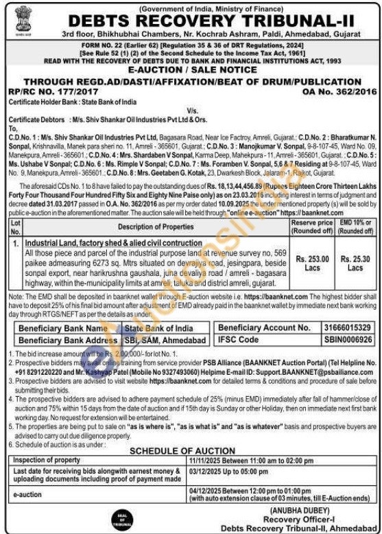 All those piece and parcel of the industrial purpose land at revenue survey no, 569 paikee admeasuring 6273 sq. Mtrs situated on devrajiya road, jesingpara, beside sonpal export, near hanikrushna gaushala, juna devaliya road/amreli - bagasara highway, within the-municipality limits at amreli, taluka and districi amreli, gujarat