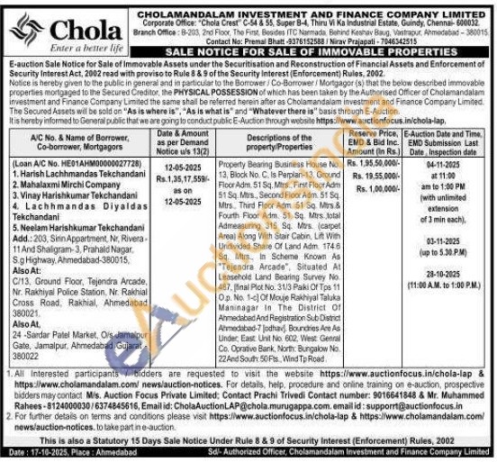 Property Bearing Business House No. 13, Block No. C. Is Parplan-13, Ground Floor Adm. 51 Sq. Mtrs, First Floor Aditi 51 Sq. Mrs, Second Floor Adm. 51 Sq Mirs. Third Floor Adm. 51 Sq. Mirs & Fourth Floor Adm 51 Sq. Mtrs total Admeasuring 315 Sq. Mirs (carpet Area) Along With Stair Cabin, Lift With Undivided Share Of Land Adm 1746 Sq. Mtrs, in Scheme Known As "Tejendra Arcade", Situated At Leasehold Land Bearing Survey No 487. (final Plot No. 31/3 Paki Of Tips 11 Op. No. 1-c Of Mouje Rakhiyal Taluka Maninagar in The District Of Ahmedabad And Registration Sub District Ahmedabad-7 Jodhav, Boundries Are As Under East: Usit hio 602. West Genral Co. Oprative Bank, North Bungalow No. 22 And South 50 Fis, Wind Tp Road