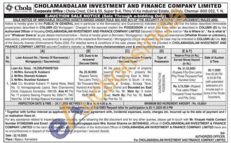 property bearing Plot No. 71, property No. 2850/71, measuring East to West 12 mirs and North to South: 9 mirs, situated at Sindagi. Sindagi Taluk, Bijapur District and Bounded on: East by: Plot No. 96, West by: 9 meter Road, North By: Plot No. 70, South by: Plot No. 72.