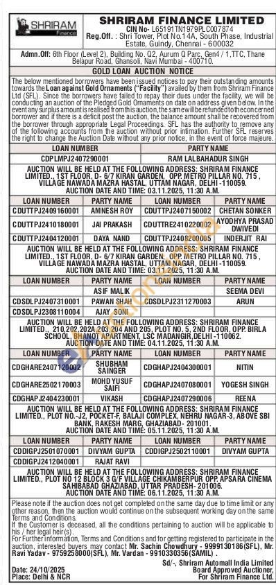 Shriram Finance Ltd Gold Auctions Auction in New Delhi