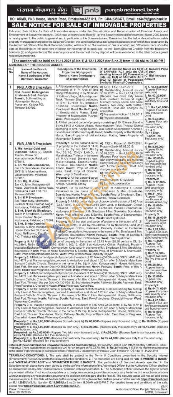 2. All that part and parcel of Property consisting of of 10.12 Ares of of land in Sy No. 834/2 of Kattoor Village,Mukundapuram Taluk, Thrissur District belonging to Smt.Pushpa Suresh W/o Suresh Mulangadan Krishnan Boundaries: North-Panchayath Mana: East-Property of Mulangadan Suresh D) Physical possession property , Road: South-Property of Koottambilly Vellanikkaran Mathu, West-