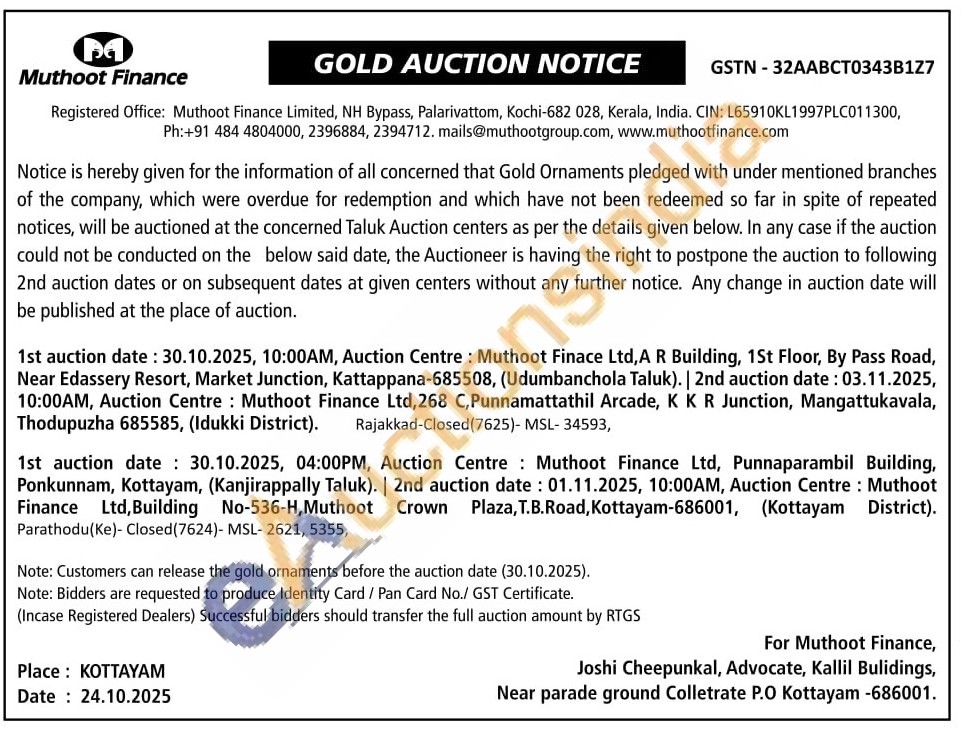 Muthoot Finance Ltd Gold Auctions Auction in Idukki