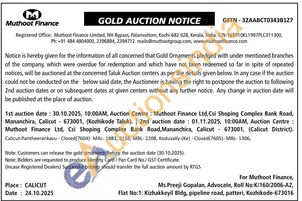 Muthoot Finance Ltd Gold Auctions Auction in Kozhikode