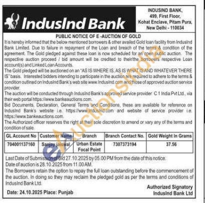 IndusInd Bank Gold Auctions Auction in New Delhi