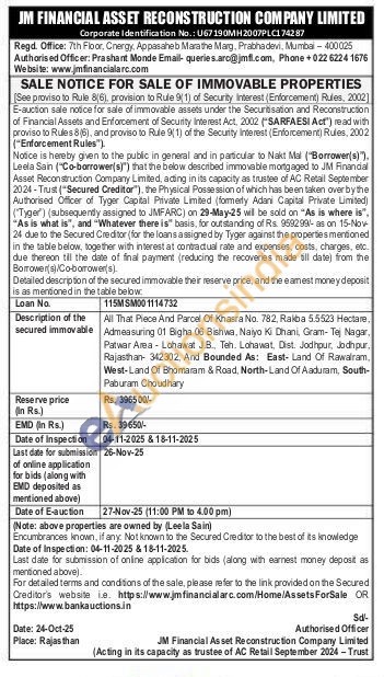 All That Piece And Parcel Of Khasra No. 782, Rakba 5.5523 Hectare Admeasuring 01 Bigha 06 Bishwa, Naiyo Ki Dhani, Gram- Tej Nagar, Patwar Area - Lohawat JB, Teh. Lohawat, Dist. Jodhpur, Jodhpur Rajasthan 342302. And Bounded As: East Land Of Rawalram. West-Land Of Bhomaram & Road, North-Land Of Aaduram, South-Paburam Choudhary