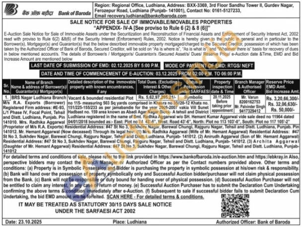 Vacant & bounded residential Plot no 115 measuring 503 5q yards comprised in Khasra no.35/20-12 Khata no. 151/225-155/233 as per jamabandie for the year 2006-2007 wakia Vill Sunet Hadbast no. 159 area known as Abadi Agar Nagar Block A tehsil and District Ludhiana registered in the name of Smt. Radhika Aggarwal wio SH. Hemant Kumar Aggarwal vide sale deed no 11964 dated 04/01/2018 bounded as:- East: Plot no 74 43-6", West: Road 43-6", North: Plot no 113 103'-", South: Plot no 117 105-2"