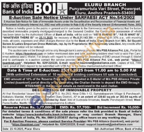 All that Residential Vacant Site Situated at RS. No 28/2, Near D No 1-12, Symalabapuram Village & Panchayath, Kaikaluru Mandal, Krishna District (Present Eluru District), AP in an extent of 339.60 sq.yds or 283.94 sq.mts of site within limit of S.RO Kaikalur, bounded by: East: Site of Gudivada Sriramulu, South: Panchayath Street, West. Panta Bodhe, North: Site of Bachu Annapumamma & others.