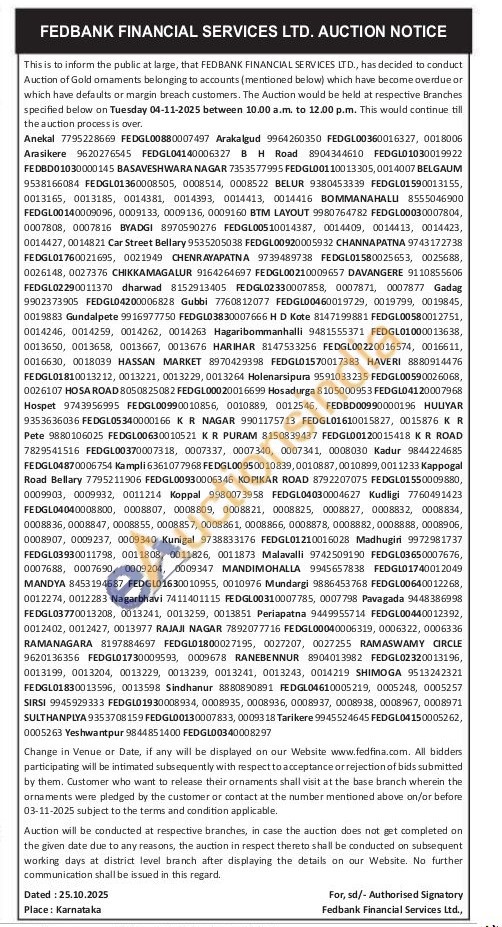Fedbank Financial Services Ltd Gold Auctions Auction in Anekal