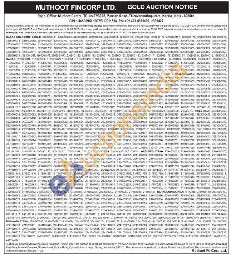 Muthoot Fincorp Ltd Gold Auctions Auction in Gadag