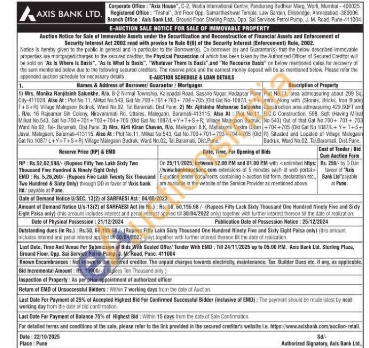 Plot No.11, area admeasuring about 299 Sq. mtrs. Along with (Stones, Bricks, Iron Blade) Construction area admeasuring 429.SQFT and R.C.C Construction, 598. Sqft (Having Milikat No.543) Out of that Gat No.700+701+703 +704+705 (Old Gat No 1087/L+Y+T+S+ R) Situated and Located of Village Malegaon Budruk, Ward No.02, Tal. Baramati, Dist Pune.