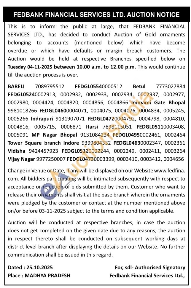 Fedbank Financial Services Ltd Gold Auctions Auction in Bareilly