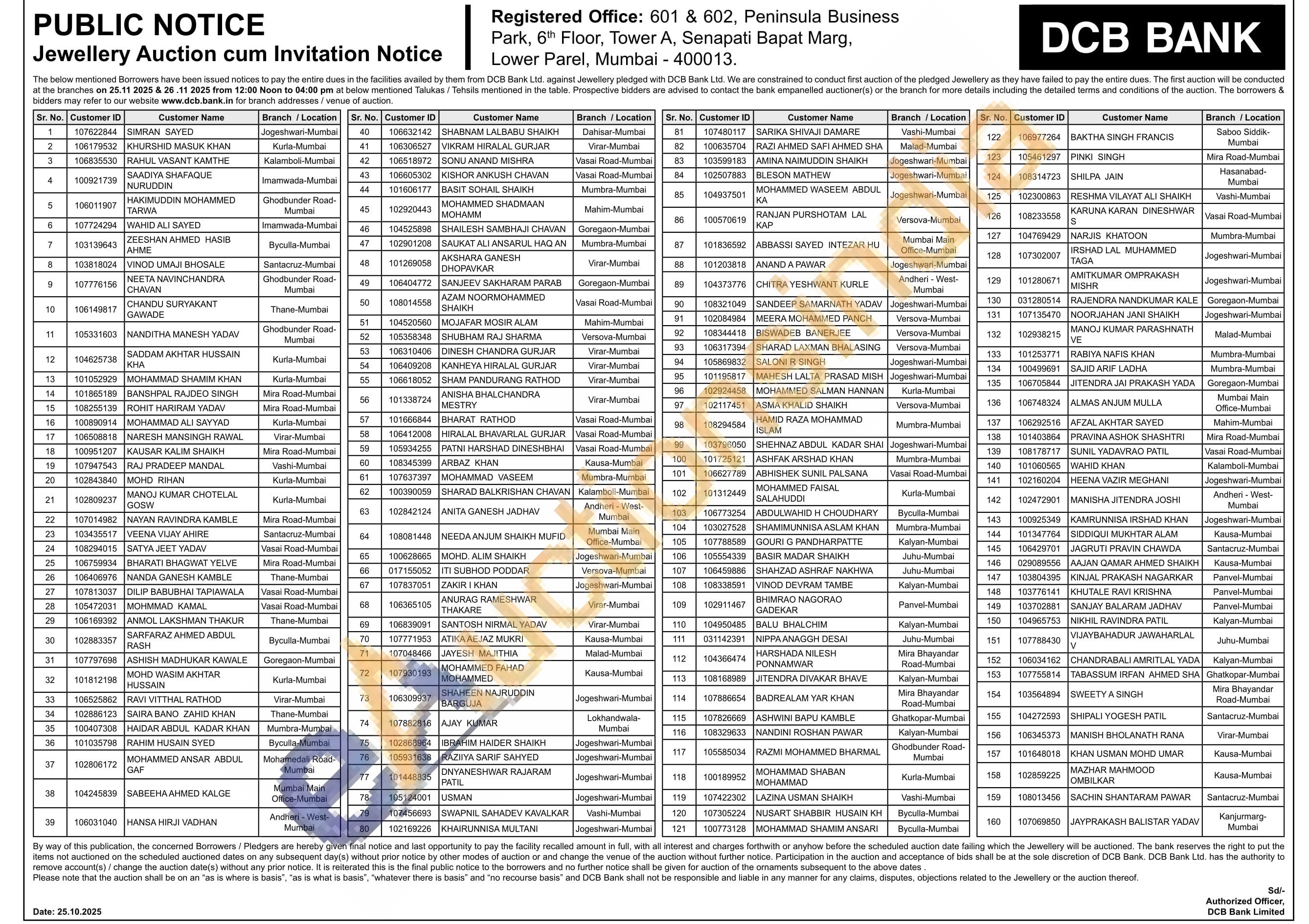 DCB Bank Gold Auctions Auction in Mumbai