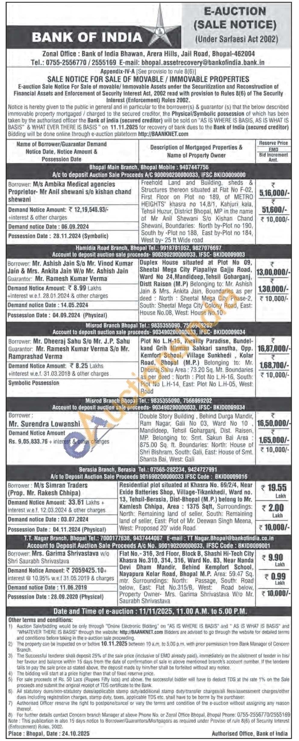 Contact Bhopal Main Branch, Bhopal Mobile: 9407447756