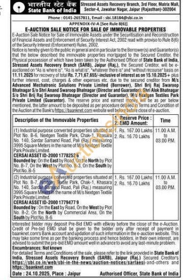 Industrial purpose converted properties situated at Plot No. B-6, Nextgen Textile Park, Chak-1, Khasara No 140. Sardar Samand Fload, Pali (Raj.) measuring 3995 Square Meters in the name of M/s Nextgen Textile Park Private Limited