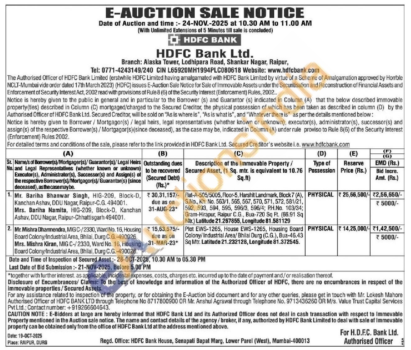 Plot EWS-1265, House EWS-1265, Housing Board Colony/Industrial Area/ Bhilai Durg (C.G.), Bua-46.43 Sq Mtr. Latitude 21.232128, Longitude 81.372545.