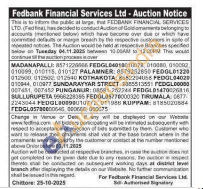 Fedbank Financial Services Ltd Gold Auctions Auction in Chittoor