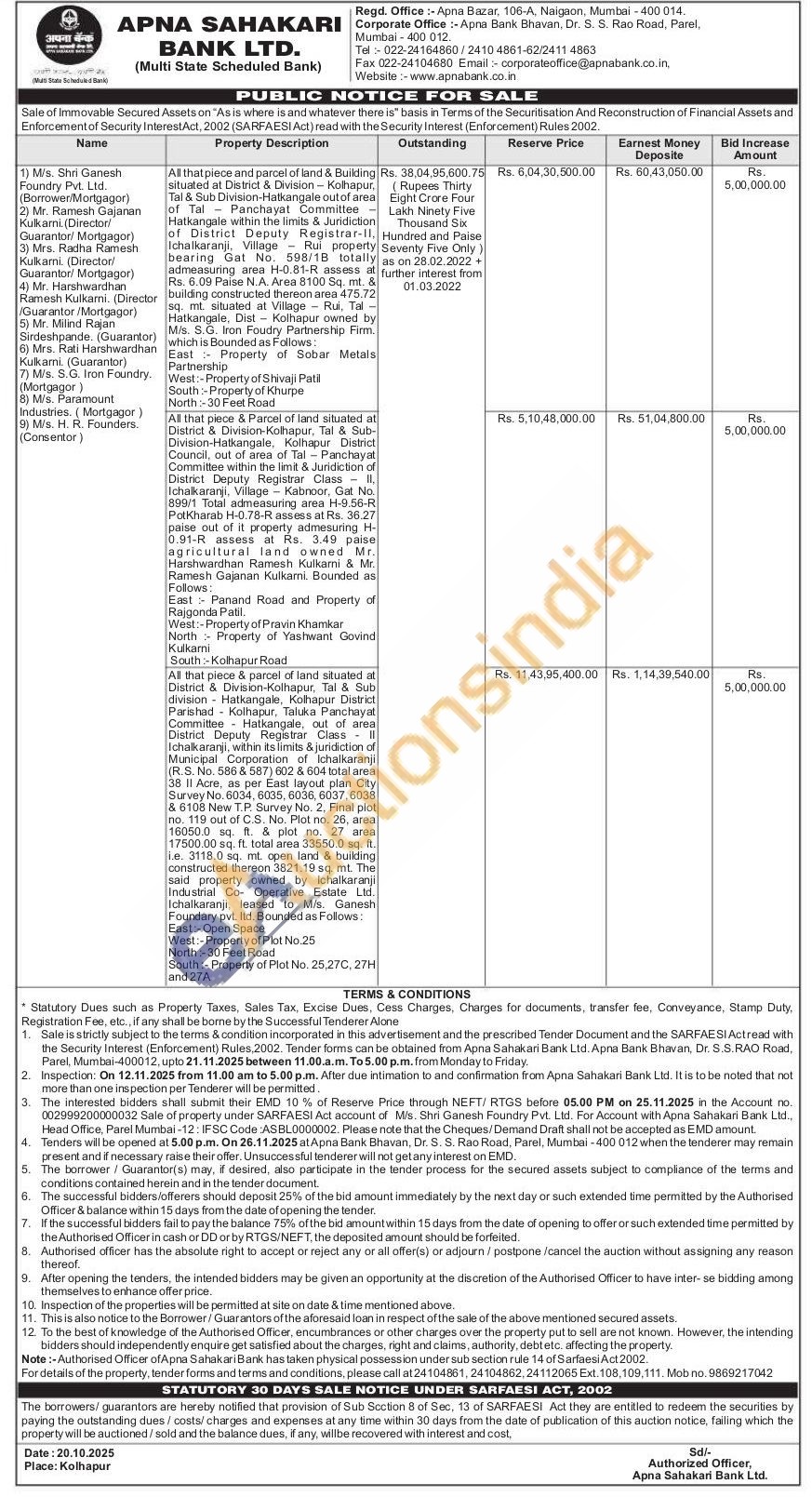 All that piece and parcel of land & Building situated at District & Division - Kolhapur Tal & Sub Division-Hadiangele out of area of Tal Panchayat Commitios Hatkangale within the limits & Juddiction of District Deputy Registrar-11, Ichalkaranji, Village Rul property bearing Gat No: 598/18 totally admeasuring area H-0.81-R assess at Rs. 6.09 Paise N.A. Area 81001 20 Sq. mit. & building constructed thereon area 475.72 sq. mt situated at Village Rui, Tai Hatkangale, Dist Kolhapur owrred by Mis. SG. Iron Foudry Parmership Fiem