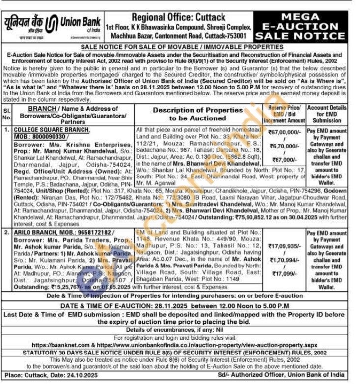 EM of Land and Building situated at Plot No.: 1148, Revenue Khata No.: 449/90, Mouza: Madhupur, P.S. No.: 13, Tahasil No.: 12, Naugaon, Dist.: Jagatsinghpur, Odisha having Area: Ac.0.07 Dec., in the name of Mr. Ashok Parida & Mrs. Pravati Parida, Bounded by North: Village Road, South: Village Road, East: Bhagaban Parida, West: Plot No.: 1149